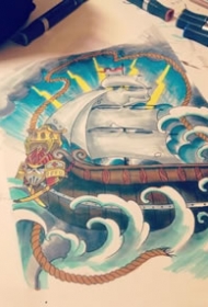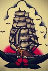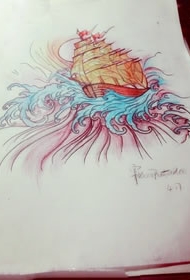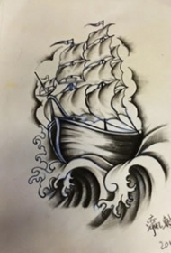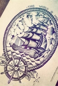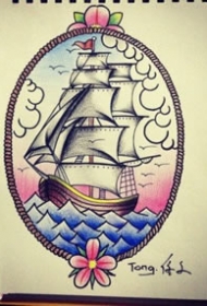 798纹身网帆船手稿图案大全图片