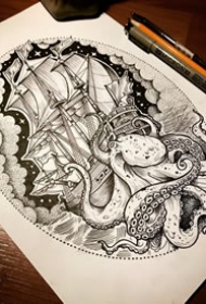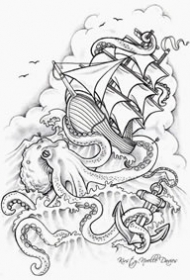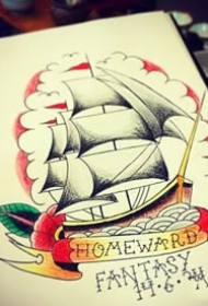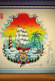 798纹身网帆船手稿图案大全图片