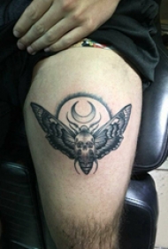 大腿纹身传统 女生大腿上黑色的飞蛾纹身图片