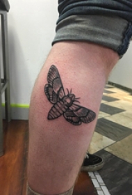 欧美小腿纹身 男生小腿上黑色的飞蛾纹身图片