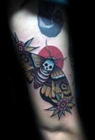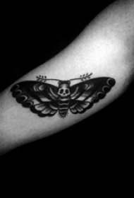 暗黑school风格的骷髅飞蛾纹身图片