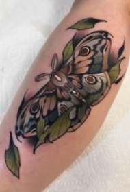 百乐动物纹身 女生手臂上彩色的飞蛾纹身图片