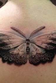 肩部彩色蜘蛛网与飞蛾纹身图案