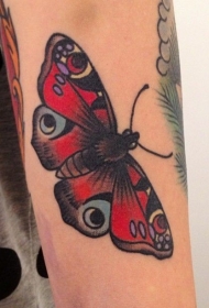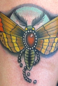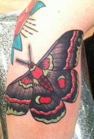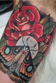 肩部彩色old school红玫瑰和蛾色纹身图案