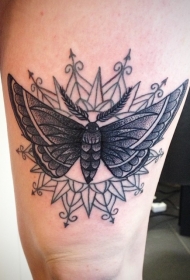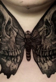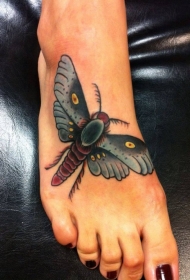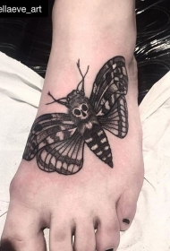 脚背黑灰蛾装饰与头骨黑暗纹身