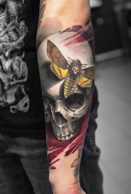 手臂骷髅飞蛾彩绘纹身图案
