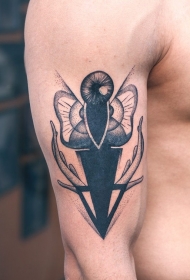 手臂黑灰点刺眼睛飞蛾鹿角纹身图案