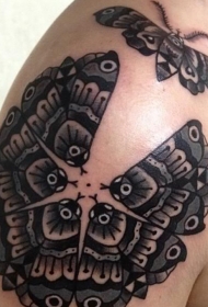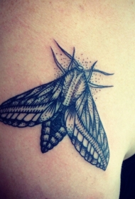 肩部点刺黑色飞蛾纹身图案