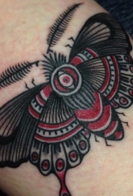 漂亮的黑色和红色飞蛾纹身图案