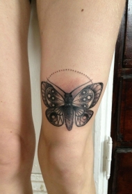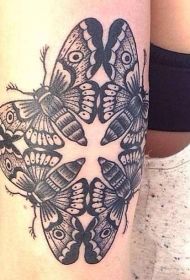大腿小清新黑灰飞蛾点刺纹身图案