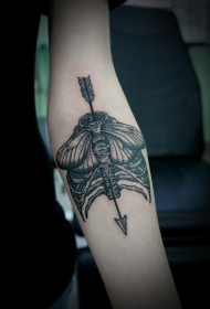 手臂人体骨骼和飞蛾箭臂组合纹身图案