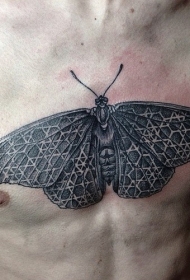 男子胸部黑灰飞蛾纹身图案