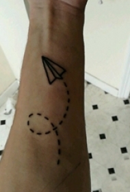 纸飞机纹身图案 男生手腕上黑色的纸飞机纹身图片