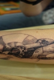 男生手臂上黑灰点刺几何简单线条飞机纹身图片
