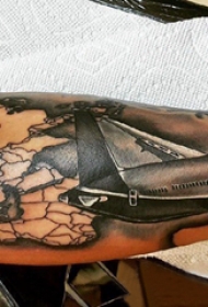 小飞机纹身 极简旅行主题的地图和小飞机纹身图案