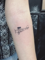 小臂小清新简单线条飞机纹身图案