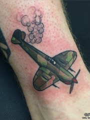 腿部彩色二战飞机纹身图片