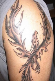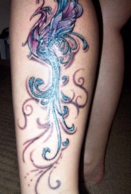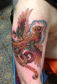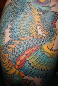 大臂old school仙女飞天凤凰鸟五彩纹身图案
