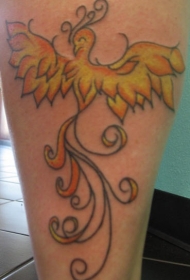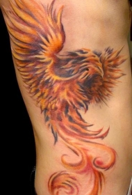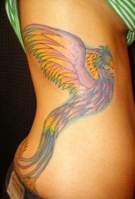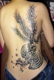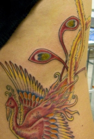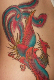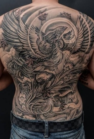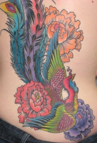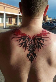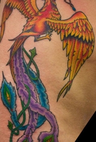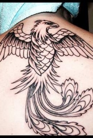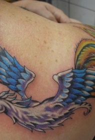背部彩色魔法凤凰与蝴蝶纹身图案