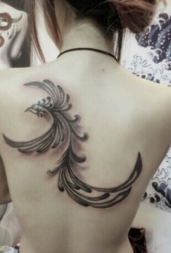 美女后背简单唯美的凤凰图腾纹身图案