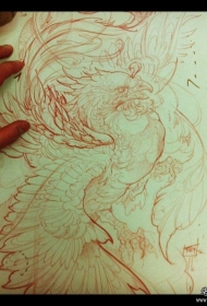 传统凤凰线条纹身图案手稿