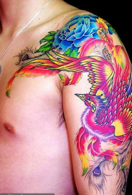 披肩彩色凤凰花朵纹身图案