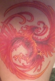 女生大腿上红色凤凰纹身图片