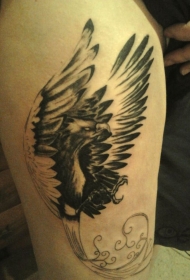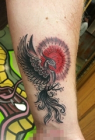 腿部黑色的凤凰纹身图案
