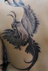 黑灰凤凰背部纹身图案