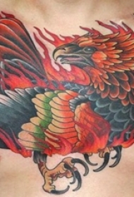 男生胸口上彩绘水彩霸气凤凰纹身图片
