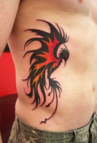 红色和黑色的凤凰图腾侧肋纹身图案