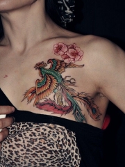 个性美女侧腰神奇的浴火凤凰纹身图案