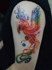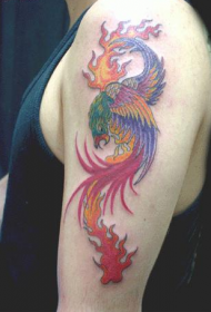 彩色的鸟纹身满背孔雀纹身火凤凰纹身动物图案纹身