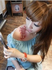 靓女腰部完美新潮的图腾凤凰字母纹身图案