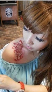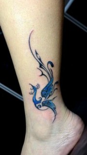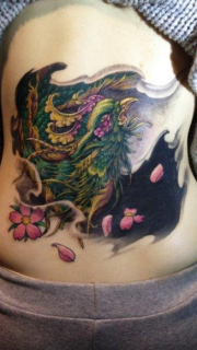 腿部个性时尚好看的骷髅玫瑰花纹身图