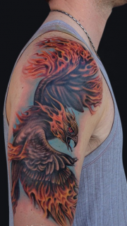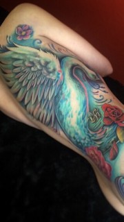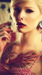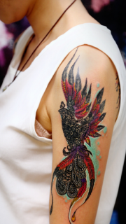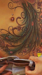 美女满腹艳丽的凤凰羽毛纹身图案大全