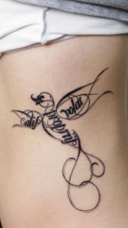 女性腰部时尚漂亮的飞鸟图腾纹身