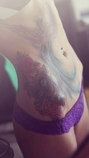靓女腰部完美新潮的图腾凤凰纹身图案