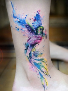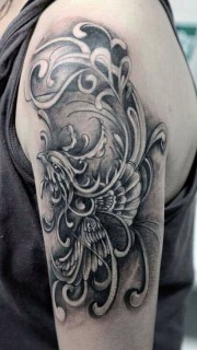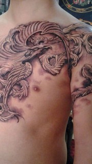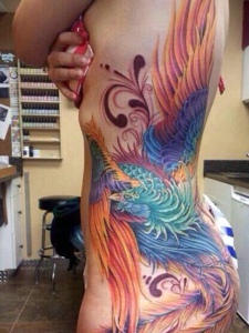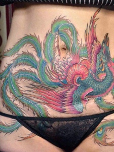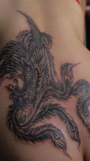 红凤凰与邪龙结合的彩色半甲纹身图片