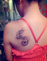 女生肩部时尚的凤凰图腾纹身