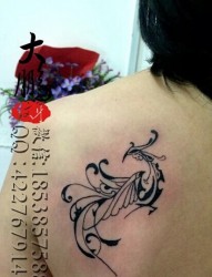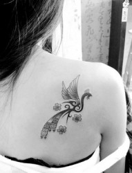 背部优雅的凤凰图腾纹身