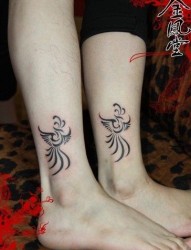 漂亮的情侣脚上的成对凤凰图腾作品