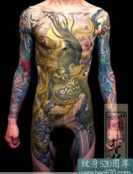 男性前满身凤凰纹身作品