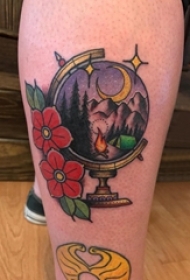 男生小腿上彩绘水彩素描文艺风景纹身图片