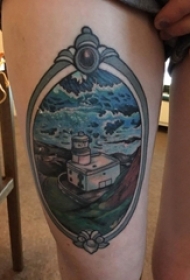 女生大腿上彩绘水彩素描创意文艺唯美风景纹身图片
