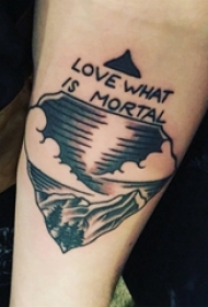 男生手臂上黑灰素描点刺技巧精美文艺风景纹身图片