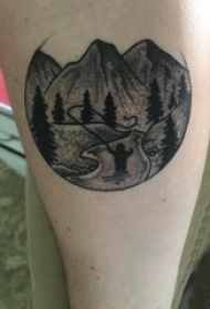 纹身风景图 男生小腿上黑色的风景纹身图片
