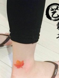 手臂黑灰风格逼真的3D枫叶纹身图案