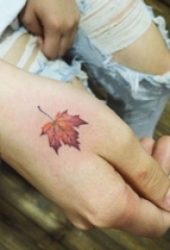 女生手背上彩绘渐变植物素材枫叶纹身图片