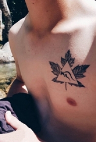 男生胸口上黑灰素描文艺唯美枫叶几何元素纹身图片